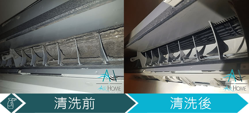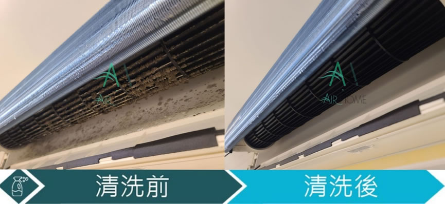 除霉 + 淨化空氣 + 遠離過敏原 髒汙+冷凝水潮濕→黴菌塵螨孳生→引發過敏 空調在運作時會抽進室內空氣,經過潮濕的蒸發器後再吹回室內。使用一段時間後,過濾網與散熱片會聚積大量的灰塵污垢、胺、病毒等有害物質,加上冷凝水的潮濕環境,成為霉菌、細菌、塵螨孳生的溫床,造成過敏、眼睛紅、鼻子癢等健康問題。