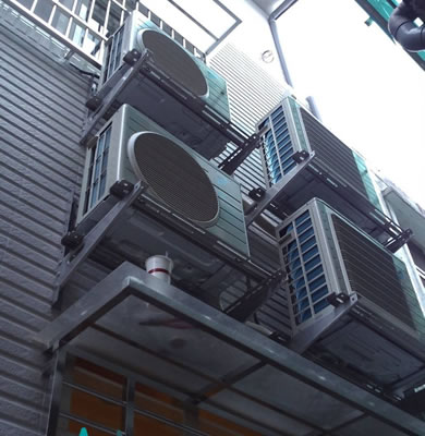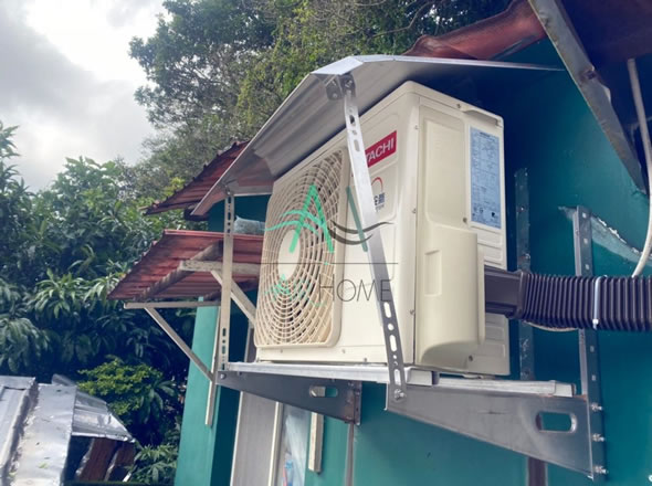 室內外機防鏽、防硫磺處理後安裝 採用白鐵遮雨棚、白鐵安裝架 讓機器使用年限更長。